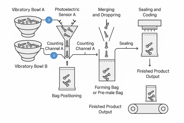 Les machines automatiques de comptage et d'emballage de vis sont largement utilisées dans l'industrie de la quincaillerie. Leur tâche principale est de compter et d'emballer les vis avec précision.